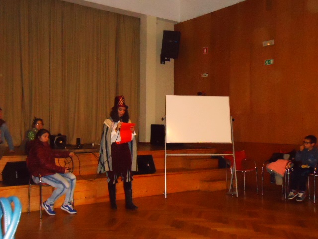 As jovens realizaram uma pequena peça de teatro. De seguida, os jogos de palavras tomaram de assalto a festa que, por sua vez, terminou com as castanhas assadas como a tradição impõe!